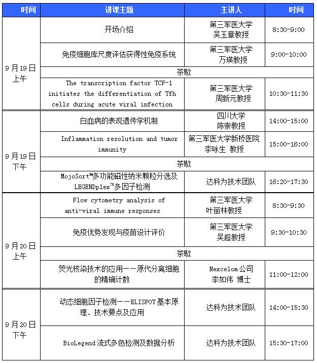 繼達(dá)科為生物第三屆流式培訓(xùn)班北京站在北大醫(yī)學(xué)部成功舉辦后,客戶反響熱烈,反饋良好。鑒于此,第三屆流式培訓(xùn)班重慶分站將于9月19-22日在重慶第三軍醫(yī)大學(xué)拉開帷幕,為期4天。
