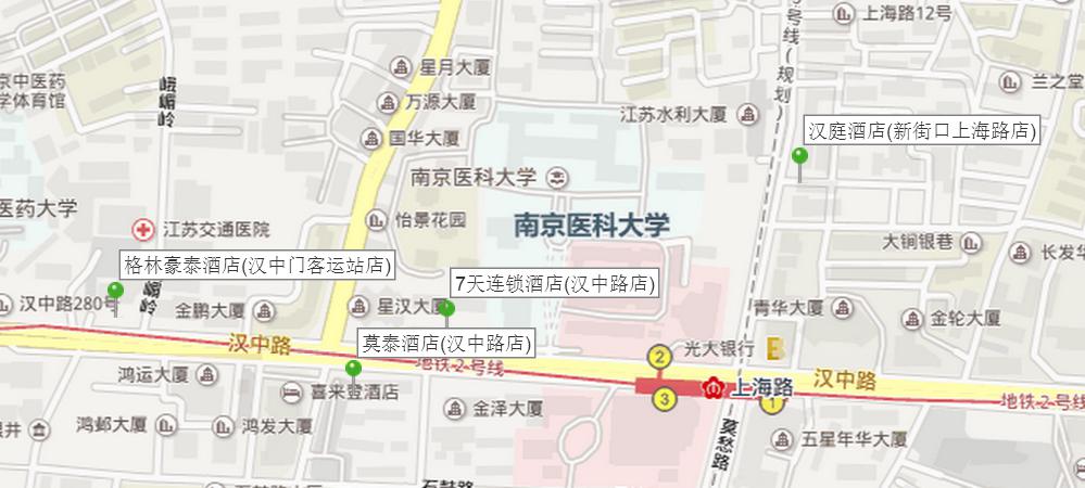 3. 格林豪泰酒店(漢中門客運站店):鼓樓區漢中路278號(漢中路與峨嵋嶺交匯處)