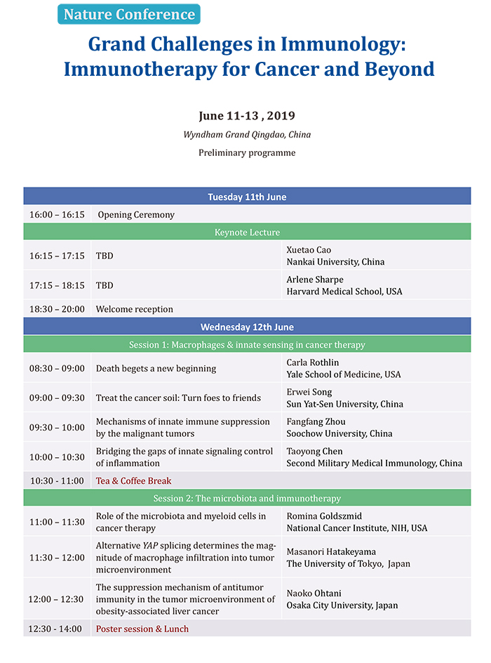 此會議是以《Nature Immunology》、《Nature Review Immunology》、《Nature》和《Cellular &Molecular Immunology》四本國際頂級免疫學期刊為交流平臺,以促進國際免疫學家交流為主旨的學術會議,自2009年起本系列會議啟動召開,現已成功舉辦六屆會議。