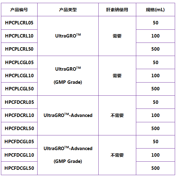 符:Helios可提供的血清替代物的所有產品和規(guī)格: