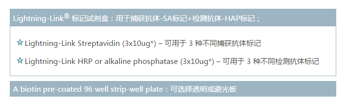 只需自備標準品、抗體對和HRP/AP檢測試劑,輕松制備ELISA。