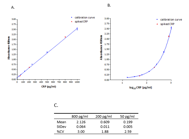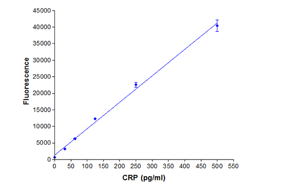 計算:擬合標準曲線,通過測量吸光度來確定添加到板中的樣品的CRP濃度。