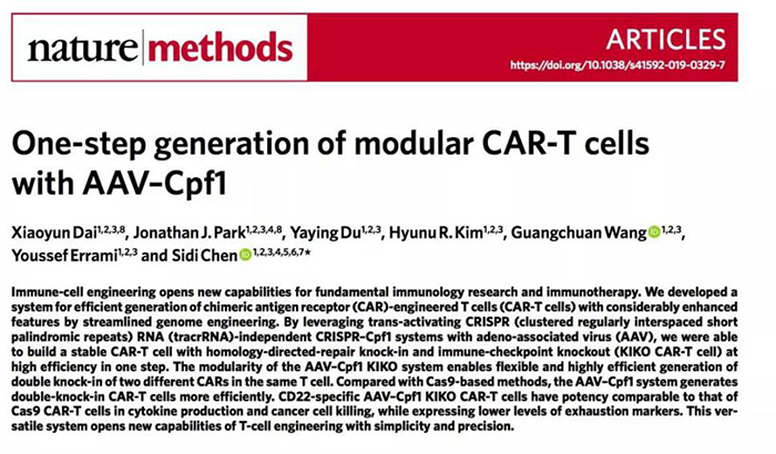 作者利用腺相關病毒( AAV )與CRISPR -Cpf1系統,開發了一種高效的制備的Car-T的方法,而且具有顯著增強的特征。該技術使得Car-T制備的高效性大大提高。