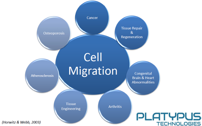 胚胎發育、血管生成、傷口愈合、免疫反應、炎癥反應、動脈粥樣硬化、癌癥轉移等過程中都涉及細胞遷移。研究細胞遷移有Transwell, 劃痕實驗等多種方法,各有其優缺點。