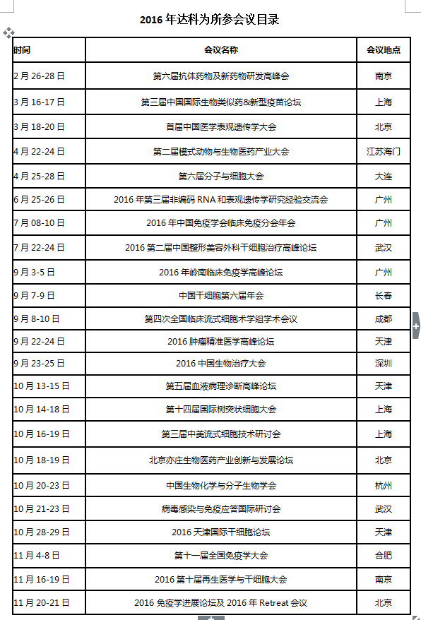 達科為與您相約2015中國蛋白藥質量與技術創新研討會